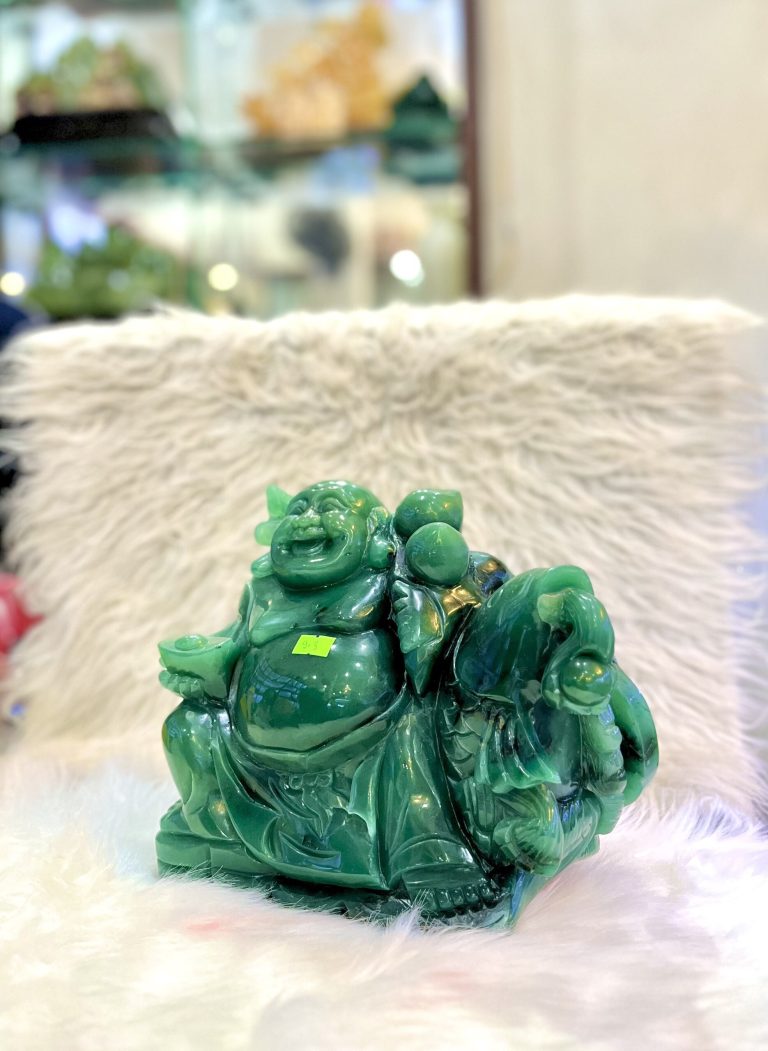 Phật Di Lặc, đá Thạch Anh xanh tự nhiên nguyên khối; TL: 9,3 kg; KT: 28x16cm; Giá: 1.